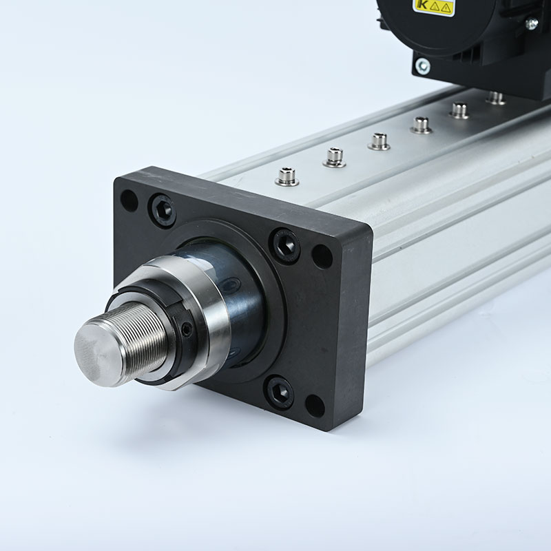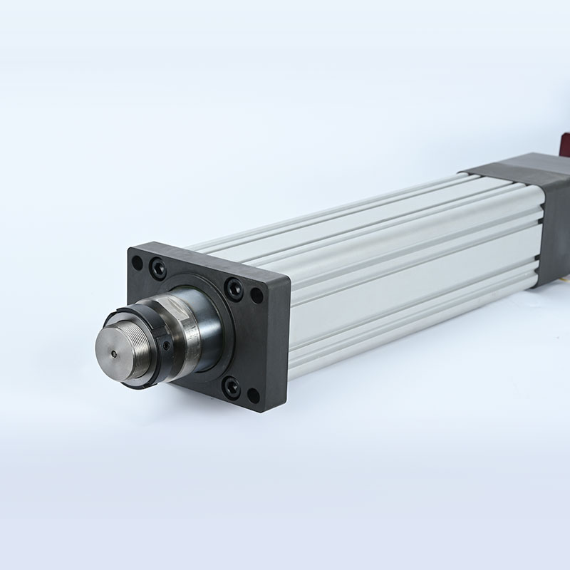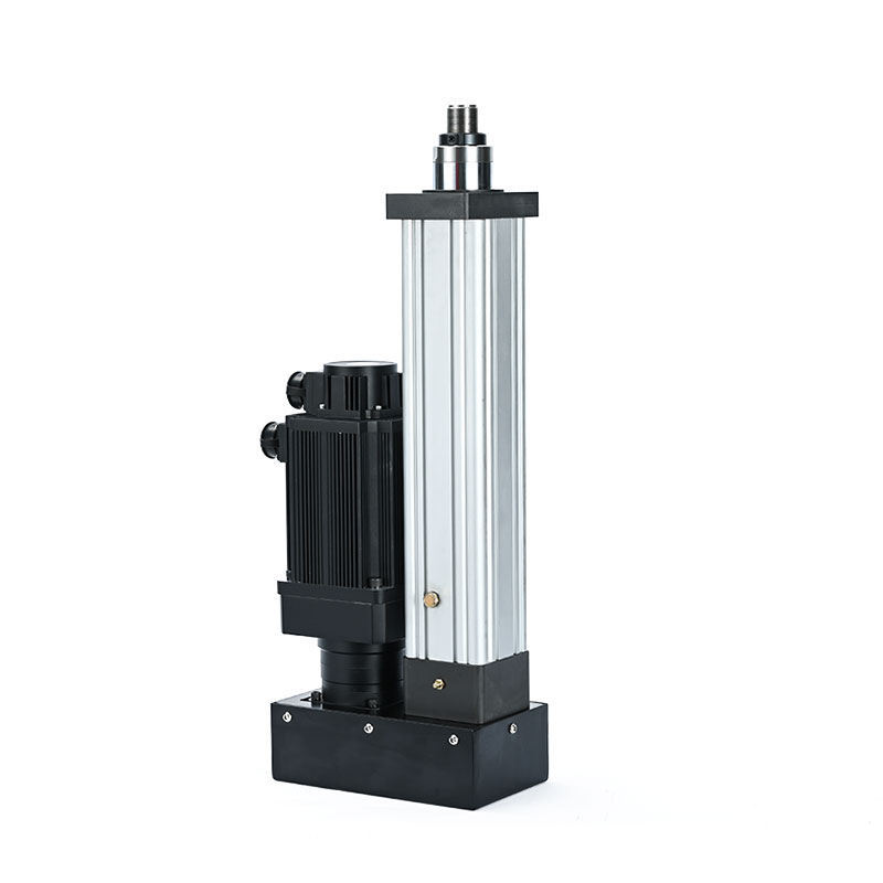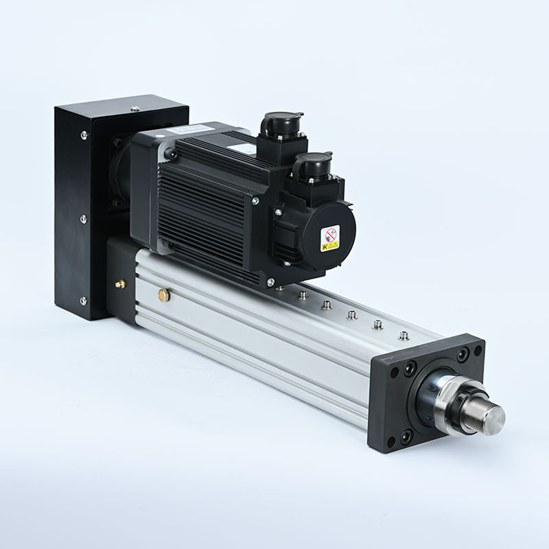直线式电动缸本系列电动缸集成了交流伺服电机、伺服驱动器、高精度滚珠丝杆、模块化设计等技术,整个电动缸具有结构紧凑、惯量小、响应快、 低噪音和长寿命等特点。伺服电机与电动缸的传动丝杆直接相连接,使伺服电机的编码器直接反馈电缸移动活塞的位移量,减少了中间环节的惯量和间隙,提高了控制性和控制精度。伺服电机与电动缸整体相连,安装容易、设定简单、使