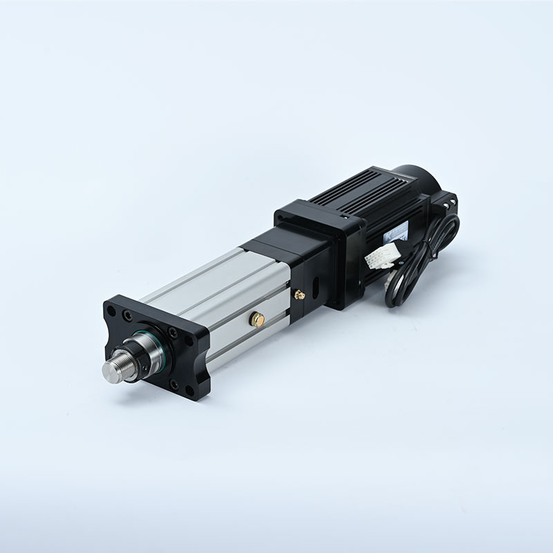 直线式电动缸本系列电动缸集成了交流伺服电机、伺服驱动器、高精度滚珠丝杆、模块化设计等技术,整个电动缸具有结构紧凑、惯量小、响应快、 低噪音和长寿命等特点。伺服电机与电动缸的传动丝杆直接相连接,使伺服电机的编码器直接反馈电缸移动活塞的位移量,减少了中间环节的惯量和间隙,提高了控制性和控制精度。伺服电机与电动缸整体相连,安装容易、设定简单、使