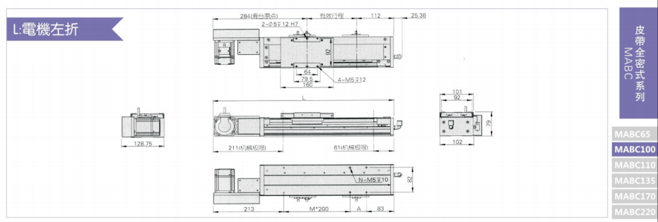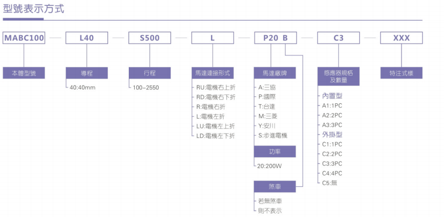 B驱动方式可依照使用需要选择滚珠螺杆驱动或时规皮带驱动。