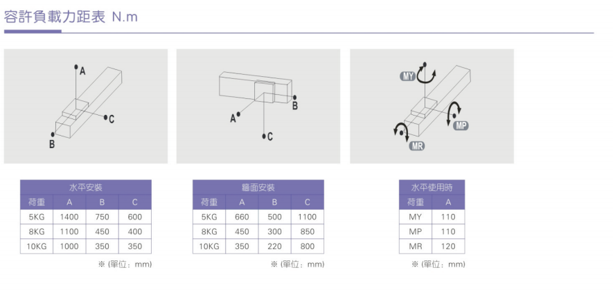3、加减速度会使搬运质量产生惯性负荷,加减速度越大可搬运质量会越小;而且过大的加减速度会产生较大的重势力,设计时需纳入考量规范。