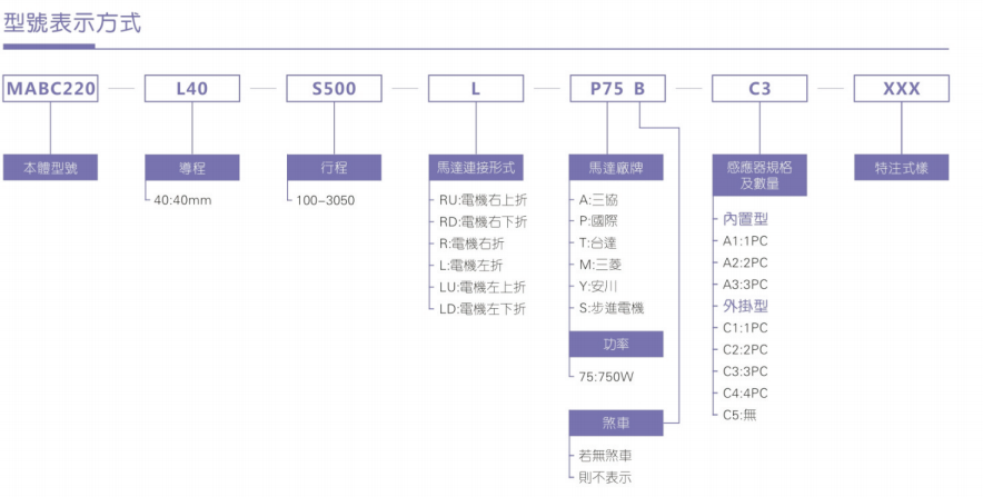 B驱动方式可依照使用需要选择滚珠螺杆驱动或时规皮带驱动。