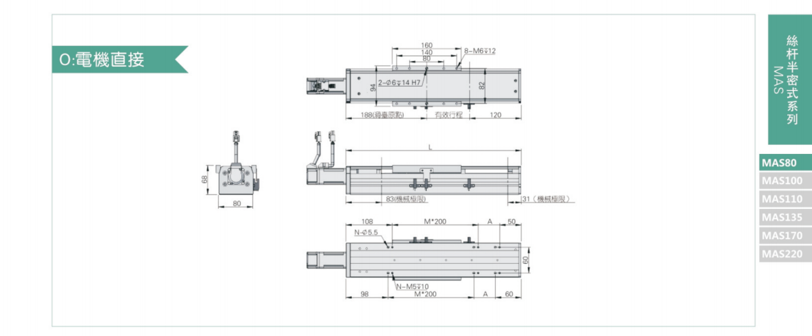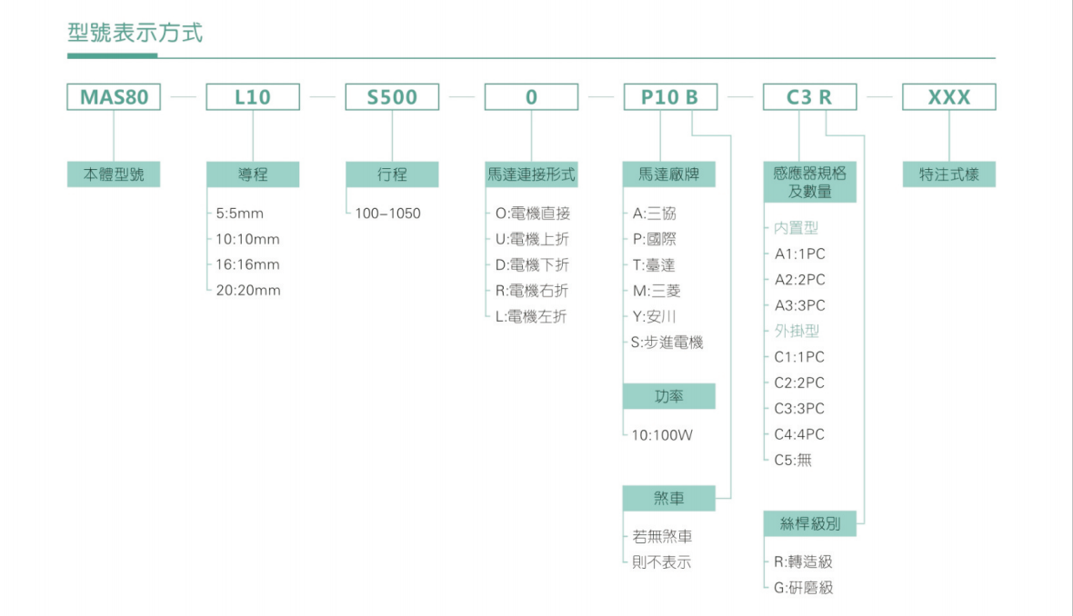 B驱动方式可依照使用需要选择滚珠螺杆驱动或时规皮带驱动。