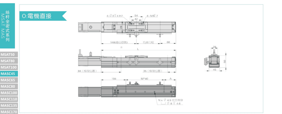 B驱动方式可依照使用需要选择滚珠螺杆驱动或时规皮带驱动。